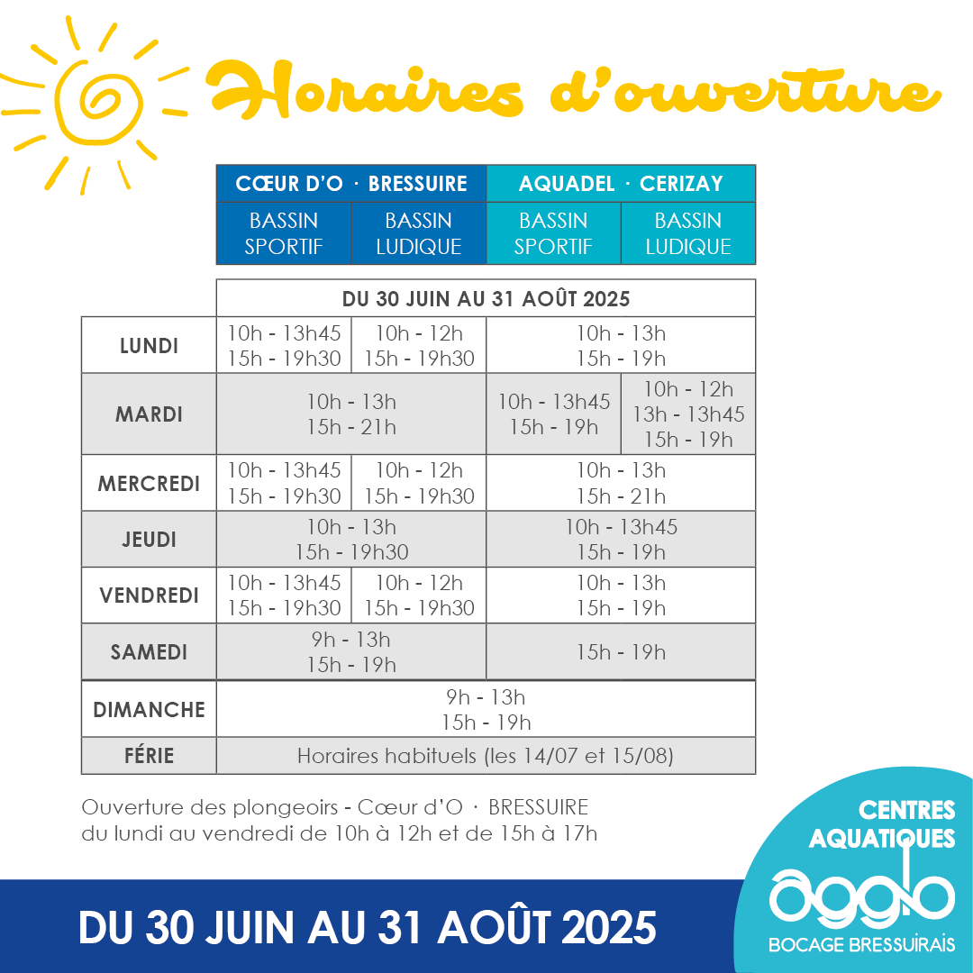 Rires, éclaboussures et bonne humeur vous attendent à Bressuire et Cerizay du lundi au vendredi de 15h15 à 17h15 (sauf le vendredi 15 août).